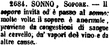 Sonno, Sopore - Il sopore invita ed è passo al sonno: molte volte il sopore è anormale, proviene da congestioni di sangue al cervello, da' vapori del vino e da altre cause. [immagine]